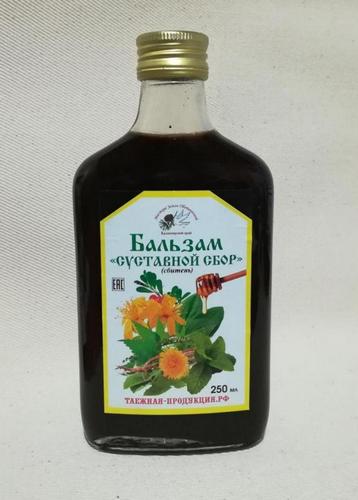 Состав: Экстракт пихтово-кедровый, вода, зверобой, лист березы, горец птичий, брусника лист, одуванчик корень, подорожник, крапива лист, мята лист, мёд натуральный, настойка сабельника. Применение: одна чайная ложка запивая водой за 30 минут до еды, два-три раза в день. Показания к применению: ревматоидный артрит, остеохондроз, подагра, нарушение солевого обмена в организме. Бальзам не является лекарством! |